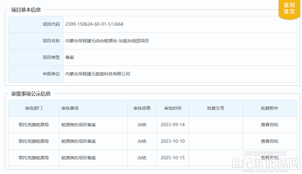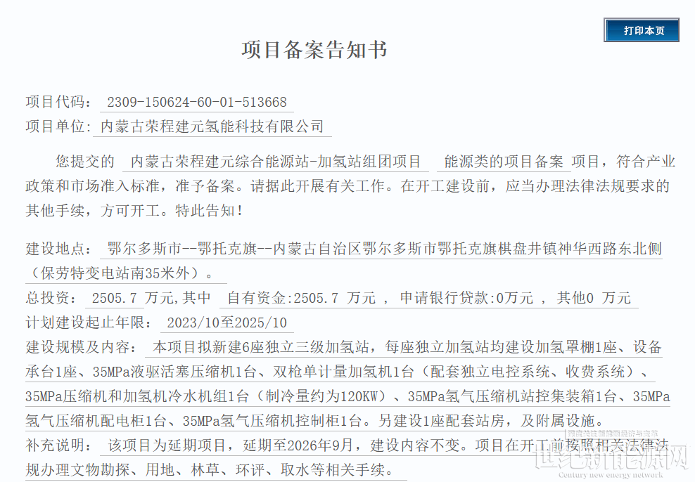 10月15日,内蒙古荣程建元综合能源站-加氢站组团项目备案。