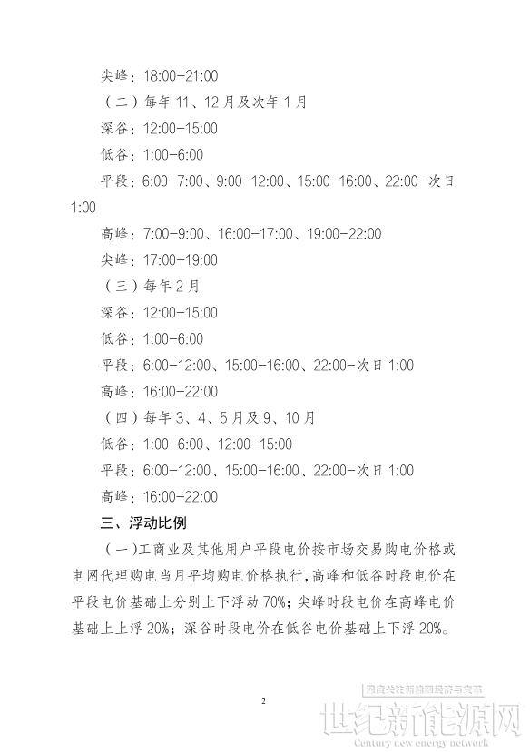 1、11月到次年1月新增深谷时段,均在午间12:00-15:00,共3小时;