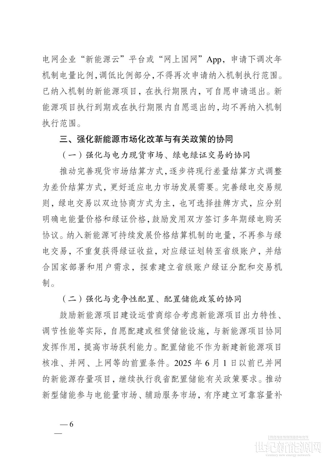 2025年6月1日以前已全容量并网的新能源项目为存量项目,2025年6月1日以前已开展并完成竞争性配置的承诺配建储能的海上风电项目,视同存量项目。