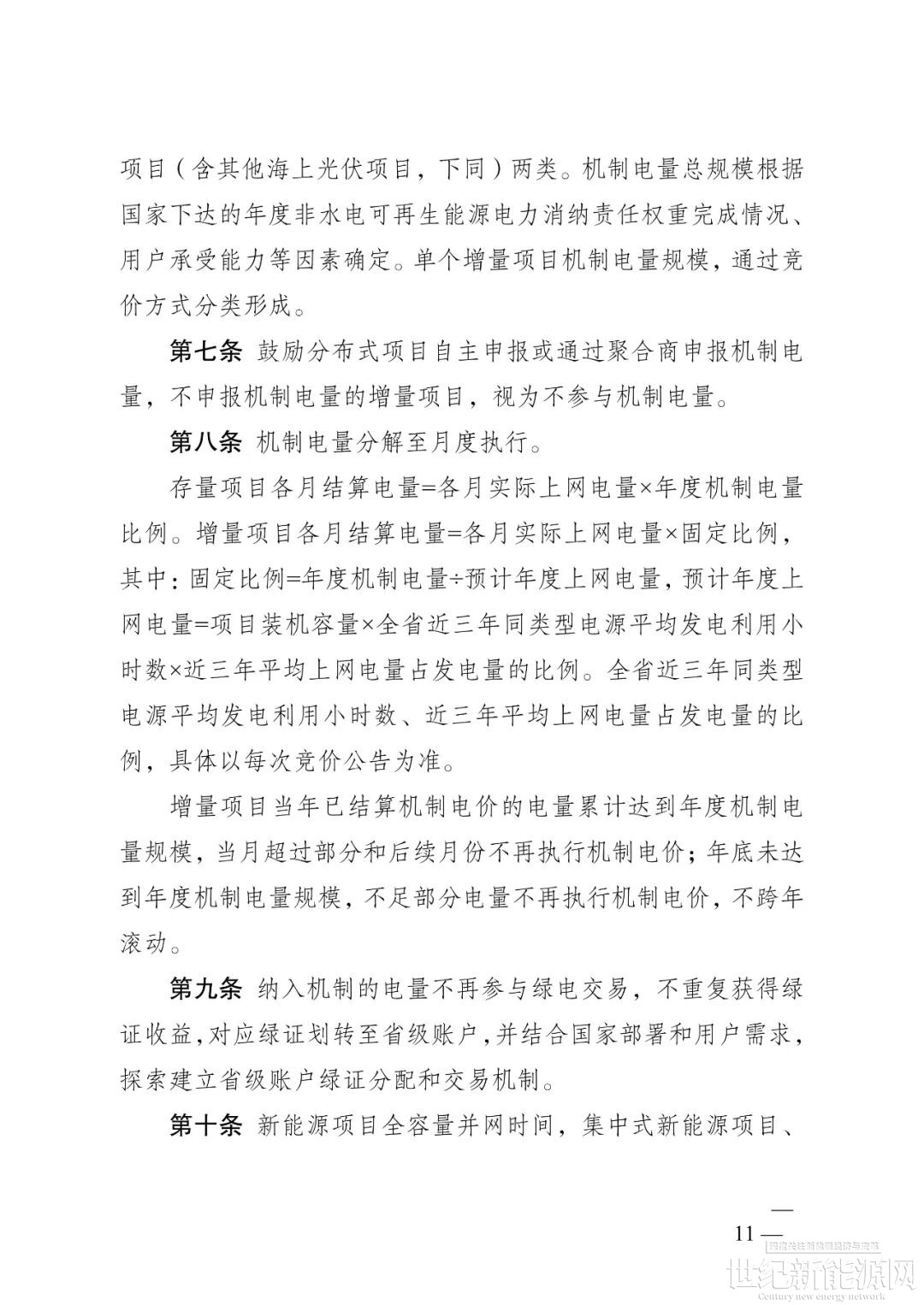 新能源项目机制电量占其上网电量的比例不高于90%;