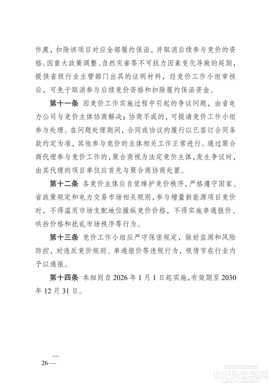 根据文件,2026年1月1日起,全省新能源项目(光伏发电、风力发电,下同)上网电量原则上全部进入电力市场,上网电价通过市场交易形成。