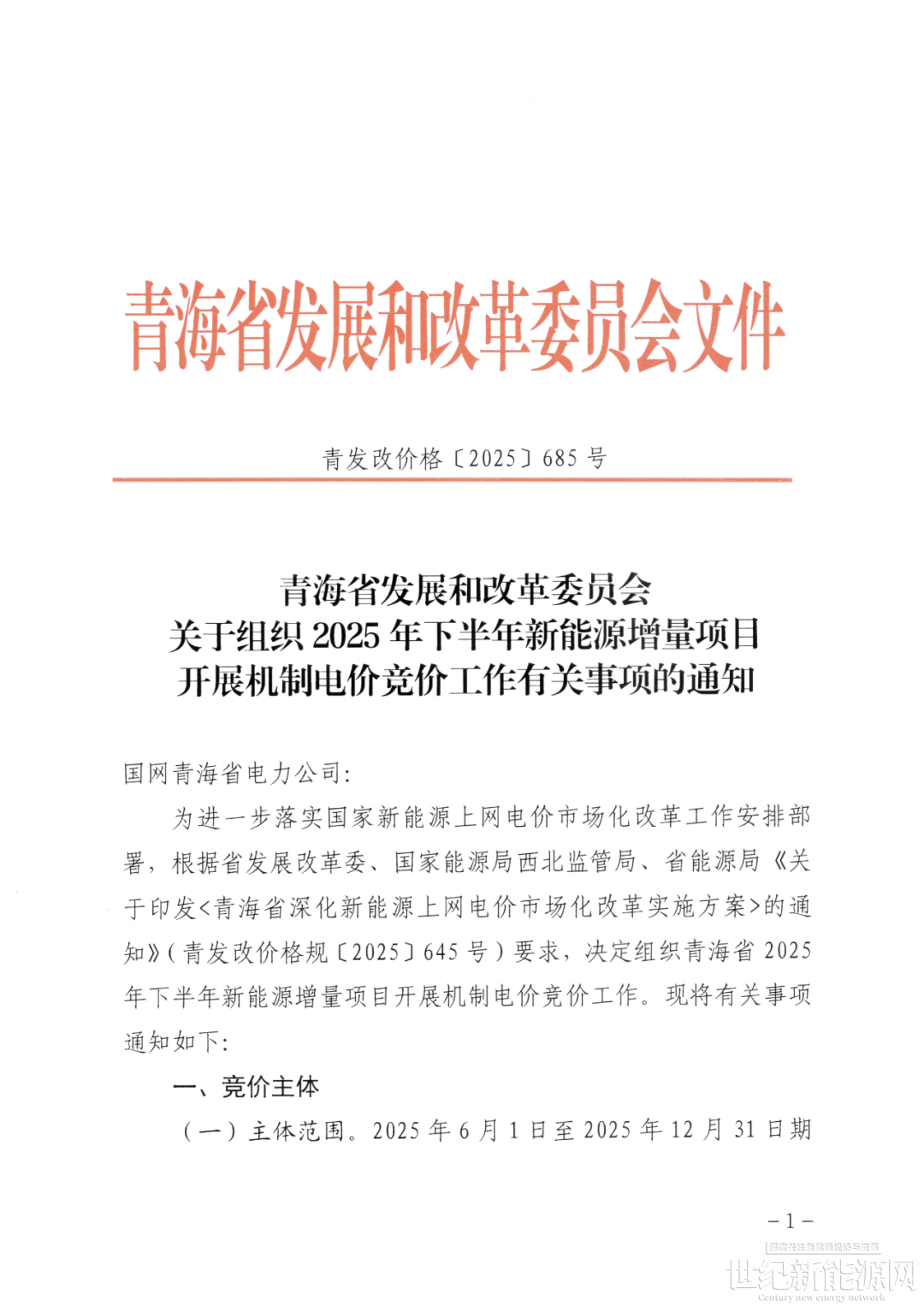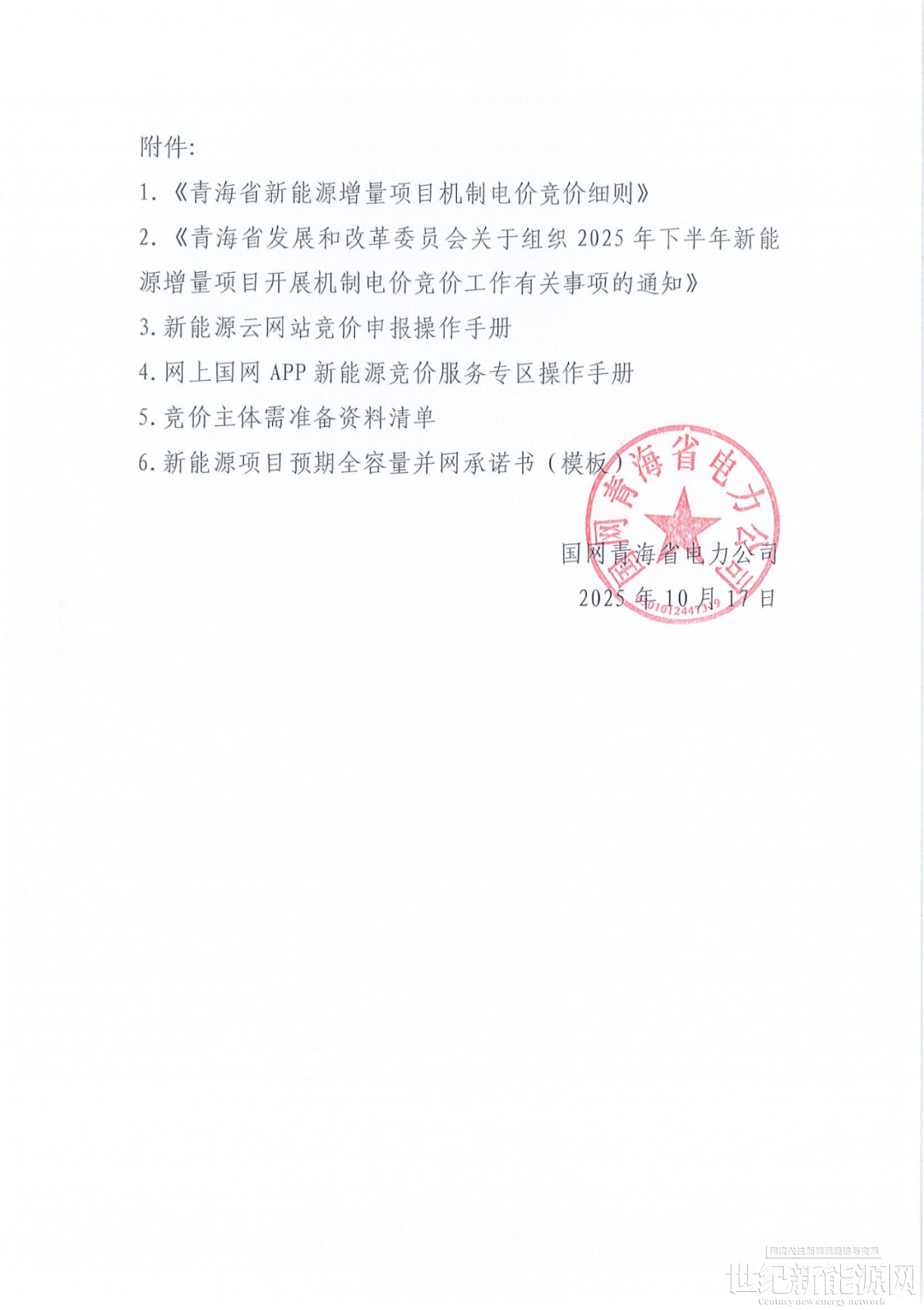 10月17日,新能源云平台发布《2025年青海省新能源机制电价竞价组织公告》。
