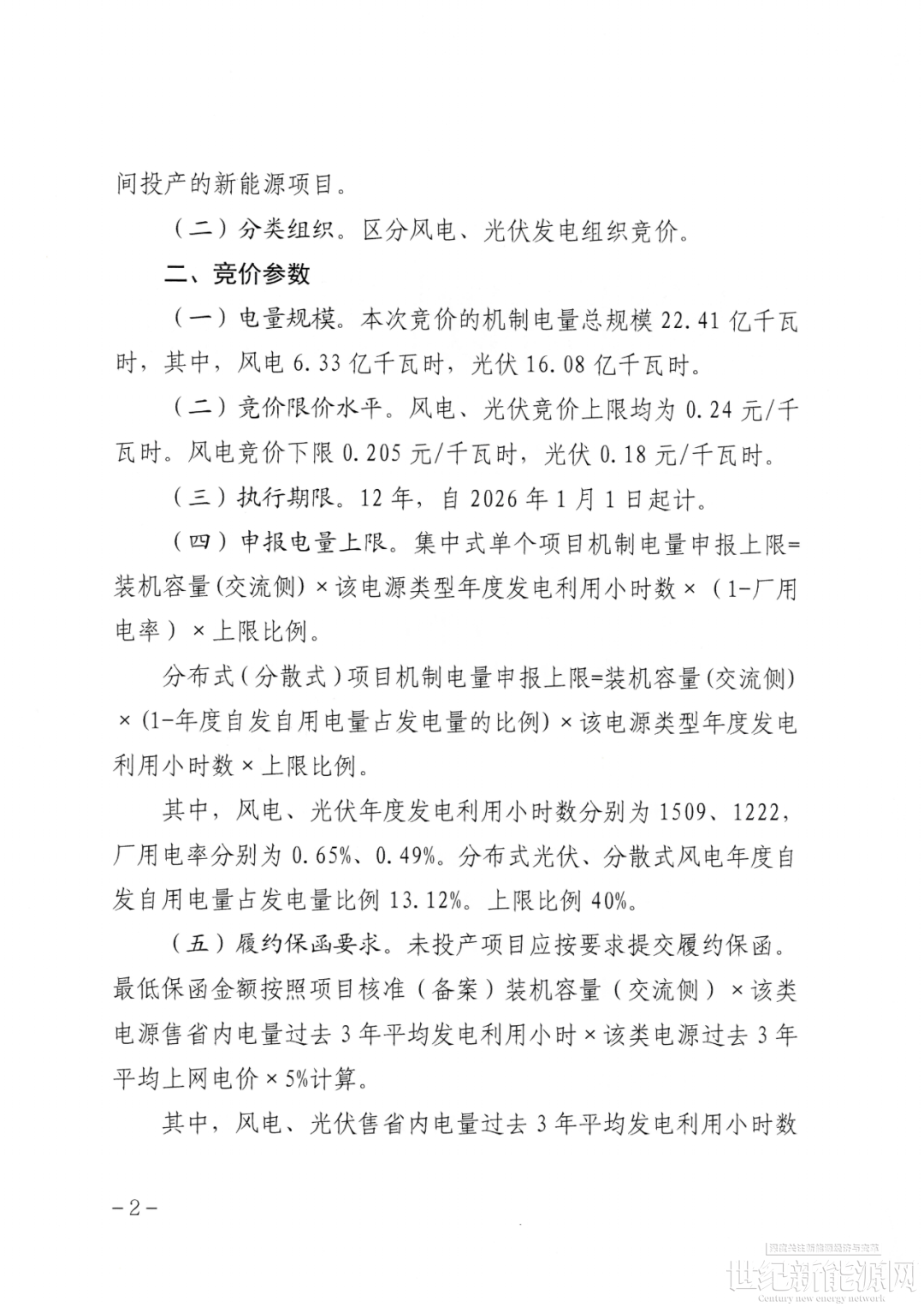 竞价限价水平:风电、光伏竞价上限均为0.24元/千瓦时。风电竞价下限0.205元/千瓦时,光伏0.18元/千瓦时。
