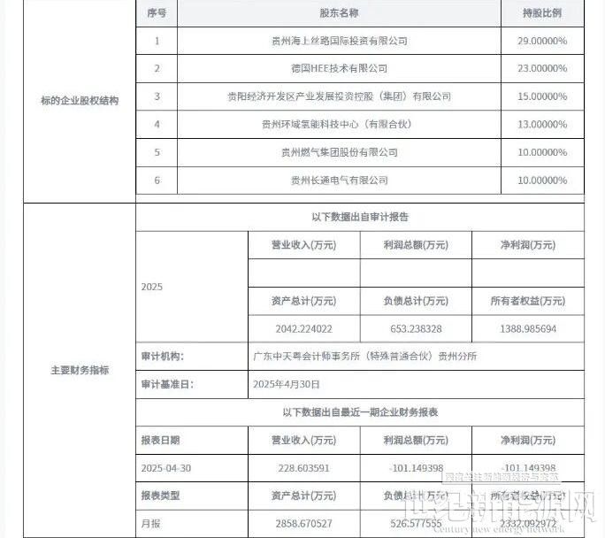 贵州氢能效率能源科技有限公司股东为贵州海上丝路国际投资有限公司,持股29%;德国HEE技术有限公司,持股23%;贵阳经济开发区产业发展投资控股(集团)有限公司,持股15%;贵州环域氢能科技中心(有限合伙),持股13%;贵州燃气集团股份有限公司,持股10%;贵州长通电气有限公司,持股10%。