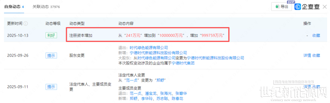 近日,宁德时代对其控股的海口润时新能源有限公司完成增资,润时新能源注册资本由241万元变更为100亿元,增幅达414倍。
