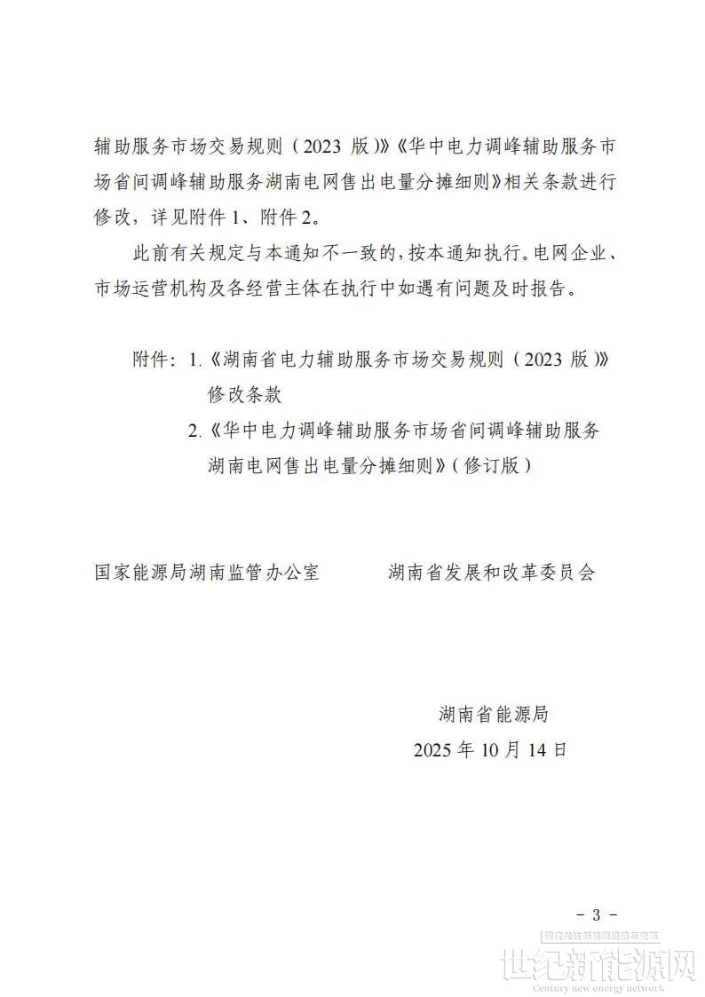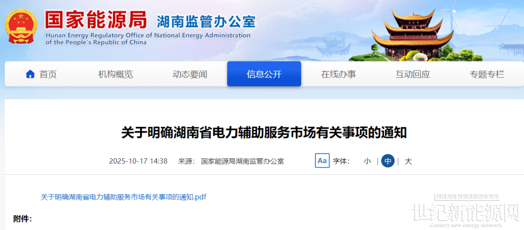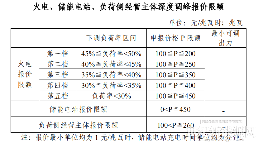 10月17日,国家能源局湖南监管办公室发布《关于明确湖南省电力辅助服务市场有关事项的通知》,提到,湖南省内调峰辅助服务市场价格上限不高于我省平价新能源项目的上网电价450元/兆瓦时。其中,火电调峰第四档、第五档报价限额分别为400元/兆瓦时、450元/兆瓦时;新型储能报价限额为450元/兆瓦时。