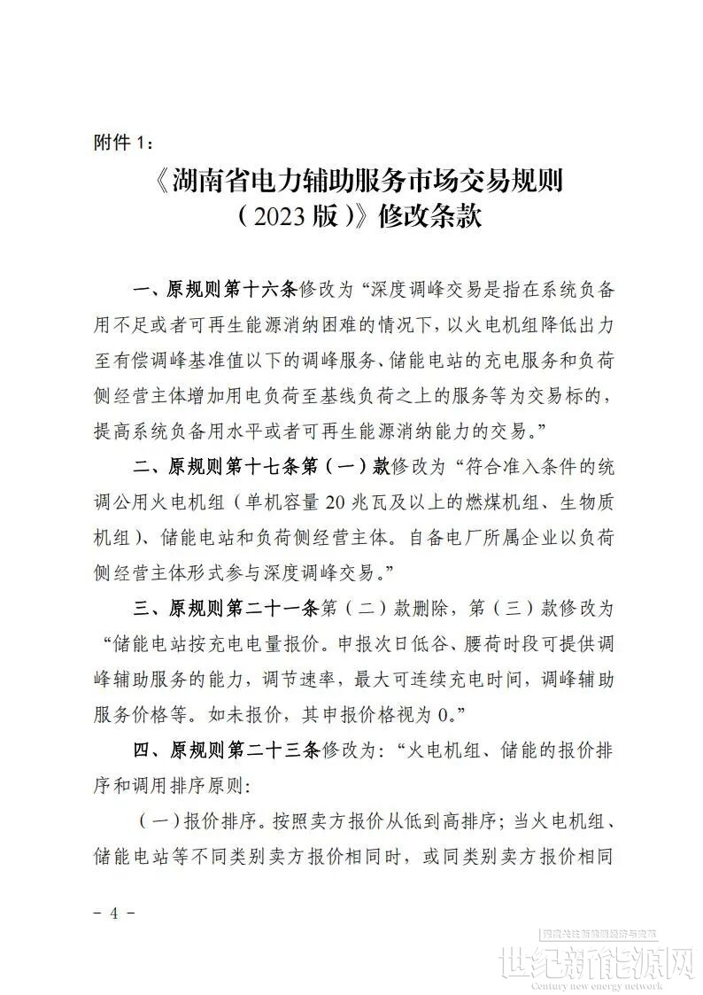 与《湖南省电力辅助服务市场交易规则(2023版)》相比,新型储能报价限额从500元/兆瓦时下调为450元/兆瓦时。火电、新型储能等主体在省内调峰辅助服务市场交易中以报价排序形成调用排序,促进公平调用各类调节资源。