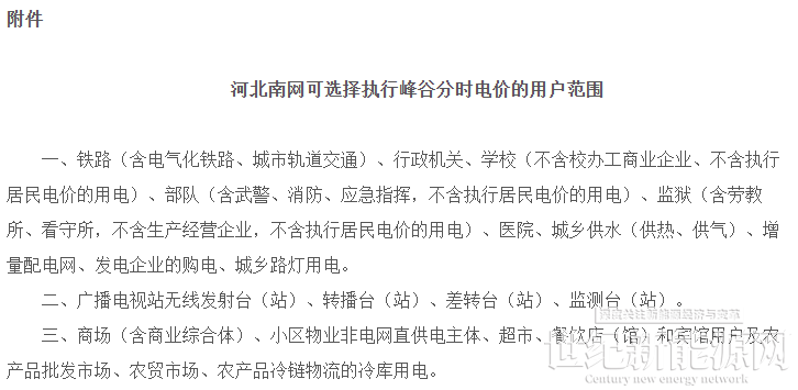 文件中提到,河北南网供电营业区域内的各类代理购电工商业用户均执行峰谷分时电价政策。对于行政机关、医院等用户(详见附件),可自愿选择执行峰谷分时电价。执行峰谷分时电价的用户需执行尖峰、高峰、平段、低谷、深谷电价。不满1千伏的工商业用户不执行尖峰、深谷电价。