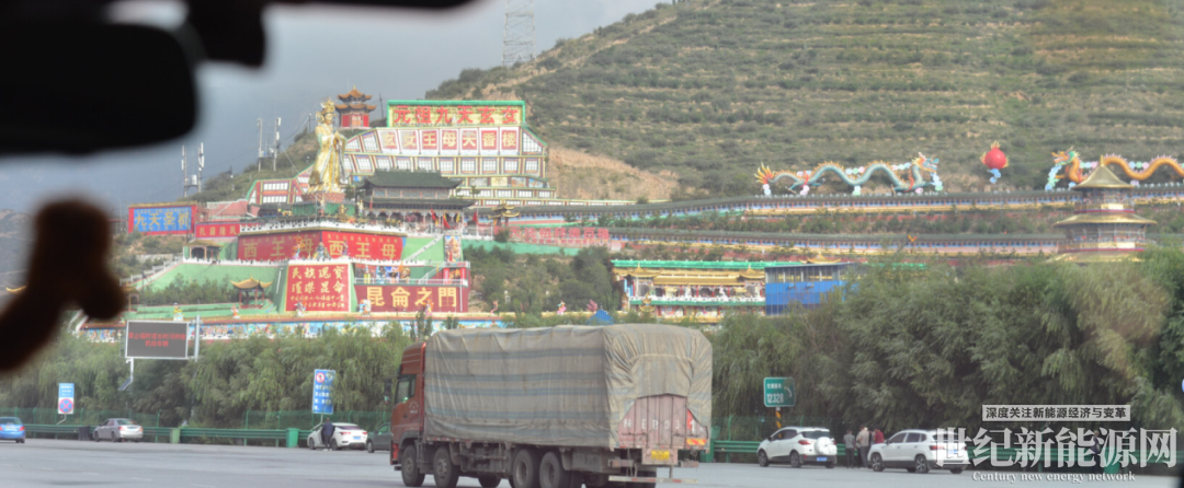车辆从西宁市城中区出发,驶入西和高速,一路向着日月山行进。正当我观察着这座城市的街景时,视线突然被600米开外的一处建筑吸引。一座巨大的热电冷却塔赫然矗立,塔身上“国家电投”四个大字清晰可见。