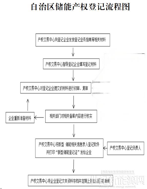 新型储能主体须将储能项目通过自治区储能产权登记系统报备,获取新型储能产权统一登记编码,明确标示“拟建”“在建”“竣工”等建设进度相关情况,完成初始登记。新型储能项目初始登记编码是获取储能产权证和通过项目备案的必备要件之一。