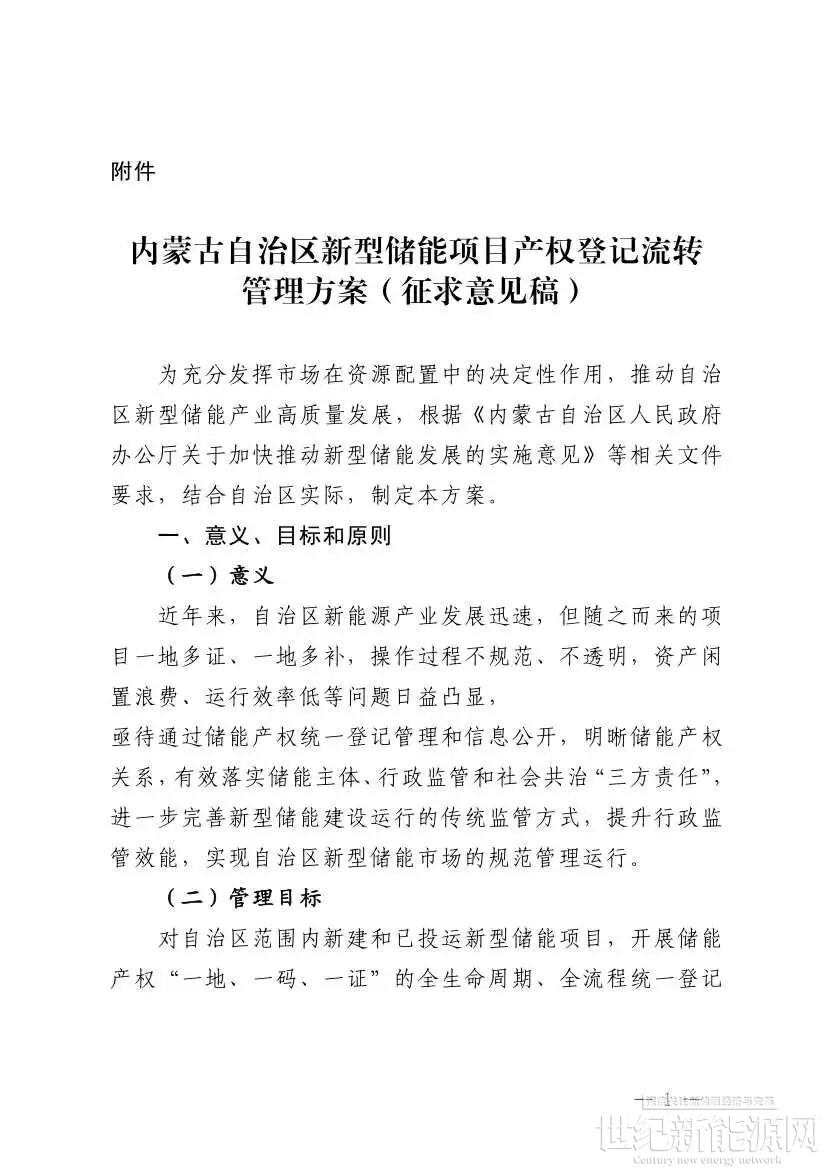 内蒙古自治区能源局关于公开征求《内蒙古自治区新型储能项目产权登记流转管理方案(征求意见稿)》意见建议的公告