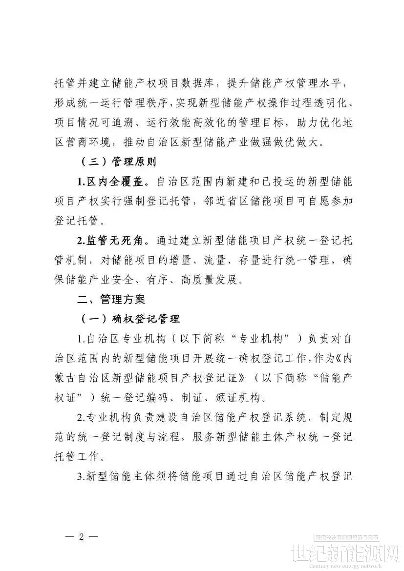 10月17日,内蒙古自治区能源局发布《内蒙古自治区新型储能项目产权登记流转管理方案(征求意见稿)》。《方案》提到,对自治区范围内新建和已投运新型储能项目,开展储能产权“一地、一码、一证”的全生命周期、全流程统一登记托管并建立储能产权项目数据库。
