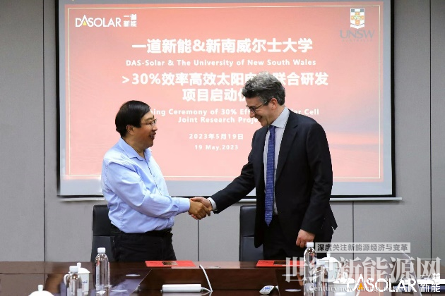 多光子SFOS电池项目启动后,项目联合负责人、新南威尔士大学光伏与可再生能源工程学院长Ned Ekins-Daukes 教授多次带领研究团队来访一道新能中央研究院,共同探讨SFOS高效电池未来产业化落地的支撑情况。一道新能在SFOS的底电池研发方面,无论是TOPCon5.0还是DBC3.0电池,均具有超过746mV的开压和27%以上的效率,不仅展现了一道新能在光伏技术研发上的卓越实力,更为SFOS电池的产业化提供了优质的底电池技术支撑。