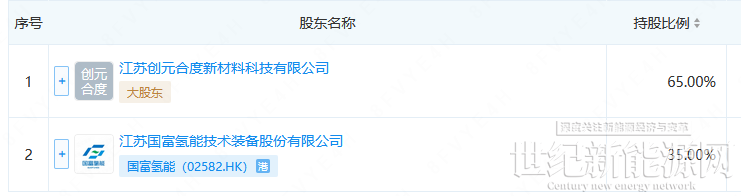股权穿透显示,江苏创元合度新材料科技有限公司持股65%,江苏国富氢能技术装备股份有限公司持股35%。