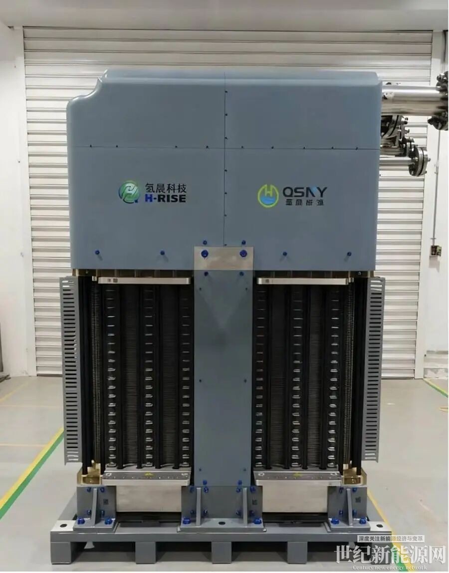 这款针对海上漂浮式平台设计的大功率PEM电解槽及制氢系统,突破了高耐久材料、高传质流场、高精度装配和高效率控制等多项创新技术,具备离网运行、防腐蚀、抗风浪和轻量化等特性,可在恶劣海洋环境下长期稳定运行。整个系统采用模块化设计,每小时制氢量达到1000标准立方米,是国际上产能最大的海上漂浮平台PEM电解槽及制氢系统。