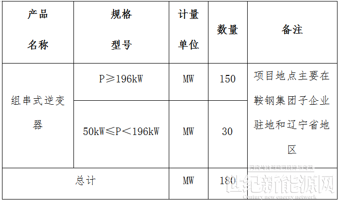 招标公告显示,本项目为光伏逆变器框架集中采购,预估采购总容量180MW。本次招标为框架采购,框架协议计划有效期为一年;如在框架协议有效期内,实际采购容量达到中标人预估授标容量,招标人有权提前终止协议。