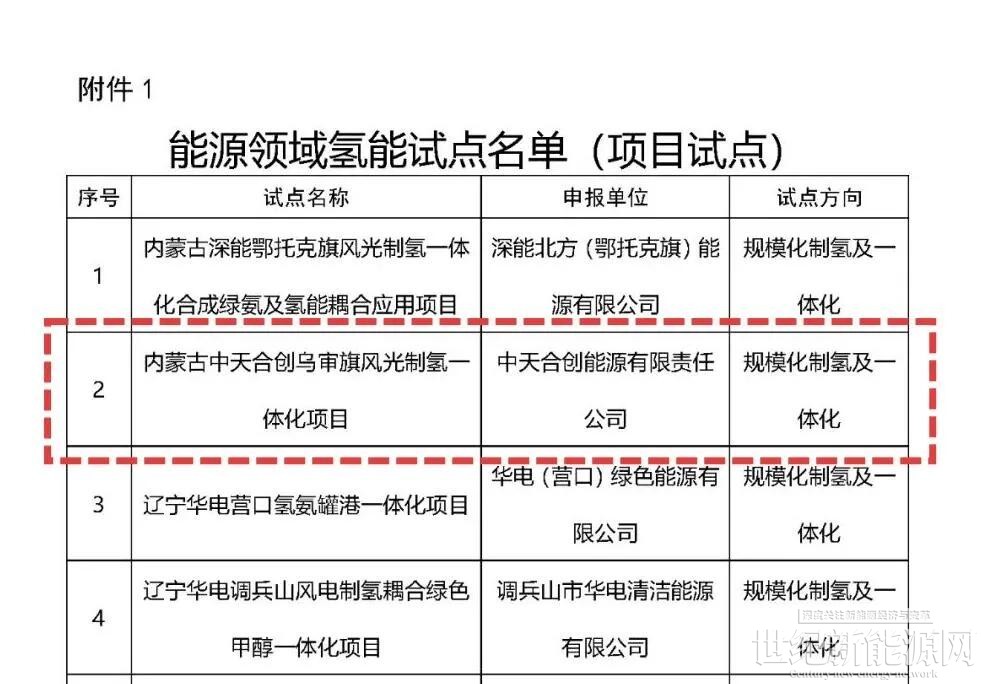 附件:1.能源领域氢能试点名单(项目试点)