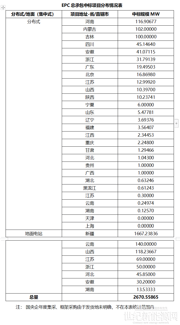 我们统计包含大型央企国企、地方能源集团、地方政府机关、两大电网、央企总包企业、知名光伏企业等,其中央企总包企业占总招标规模较高,具体各企业排名如下表: