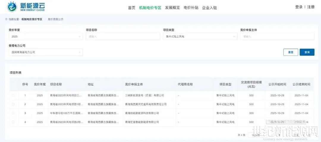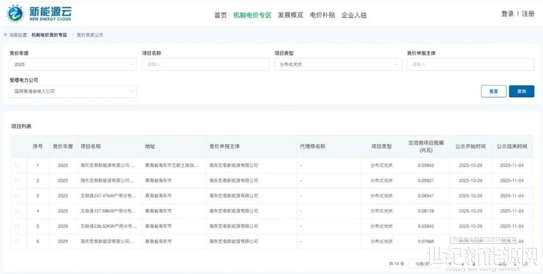 国网新能源云平台10月29日发布了参与青海省参与新能源竞价的资质审核结果。共27个项目入选,总规模5475.91792MW。其中: