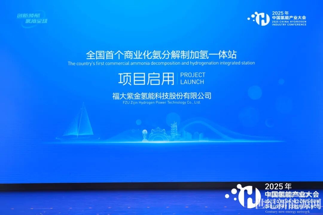 10月22日,“2025中国氢能产业大会”在佛山市南海区盛大启幕。会上,福大紫金氢能科技股份有限公司(以下简称“福大紫金氢能”)正式发布全国首座1000公斤级商业氨分解制氢加氢一体站。该项目以“可再生能源—氢—氨—储能—应用”零碳循环路线为核心,标志着我国氢能储运加注环节实现重大技术突破,商业化进程迈出关键一步。