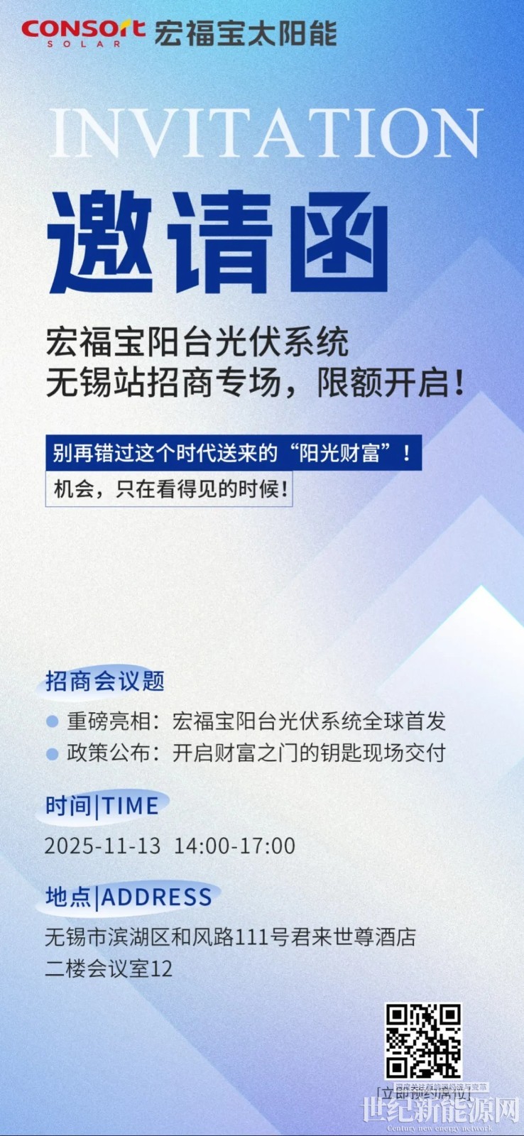 机遇在此:一场专为远见者准备的招商发布会。看清趋势是第一步,抓住机遇是关键一步。为此,我们诚意举办 【宏福宝阳台光伏系统招商发布会】,旨在寻找务实的事业伙伴。