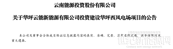 10月29日,云南能源投资股份有限公司(以下简称“云南能投”或“公司”)发布公告披露将投资建设三个风电项目。