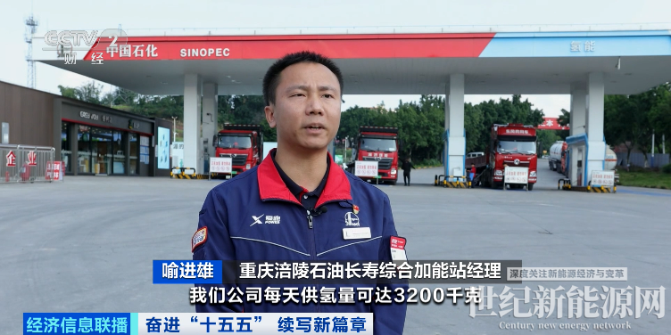 重庆涪陵石油长寿综合加能站经理 喻进雄:公司每天供氢量可达3200千克,通过科学的技术和地方的补贴,可以把终端氢价压到每千克25至30元。