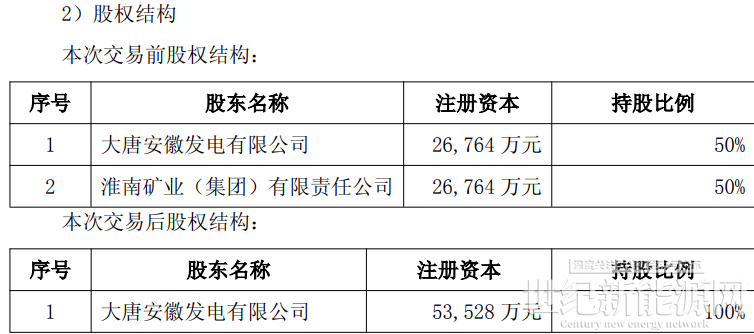 本次交易前,大唐安徽公司持有安徽电力股份50%股权。本次交易完成后,大唐安徽公司将持有安徽电力股份100%股权。
