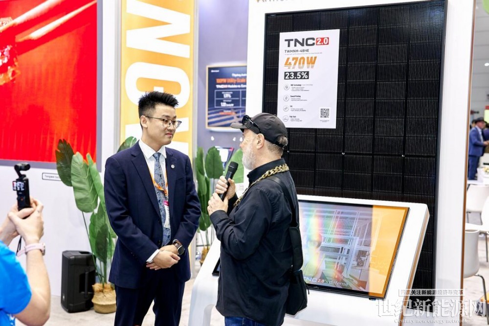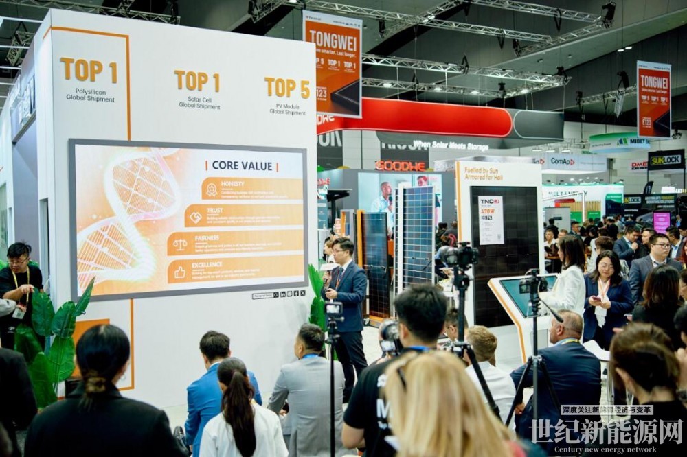 展会现场,通威股份光伏商务部组件营销海外技术负责人徐杰做主题演讲,聚焦“可靠”、“高效”两个关键词,展示了通威在产品创新上的持续突破。