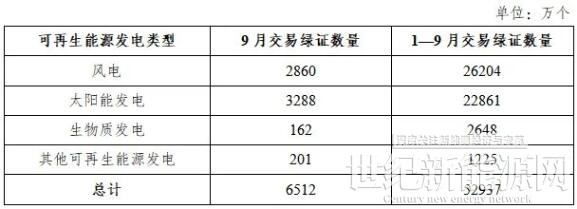 2025年9月,风电交易绿证2860万个,1-9月风电交易绿证26204万个。
