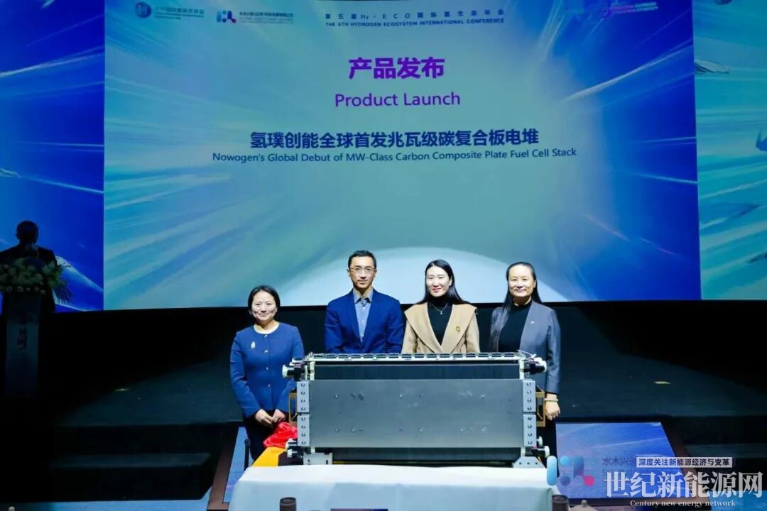 当天下午,氢璞创能全球首发额定功率600kW,最大设计功率1MW的碳复合板电堆。这款产品的成功问世,标志着我国燃料电池技术正式迈入“单堆兆瓦”新时代。同时也标志着氢璞大功率电堆在流体分布、结构封装和极致工艺上均取得了重大突破。