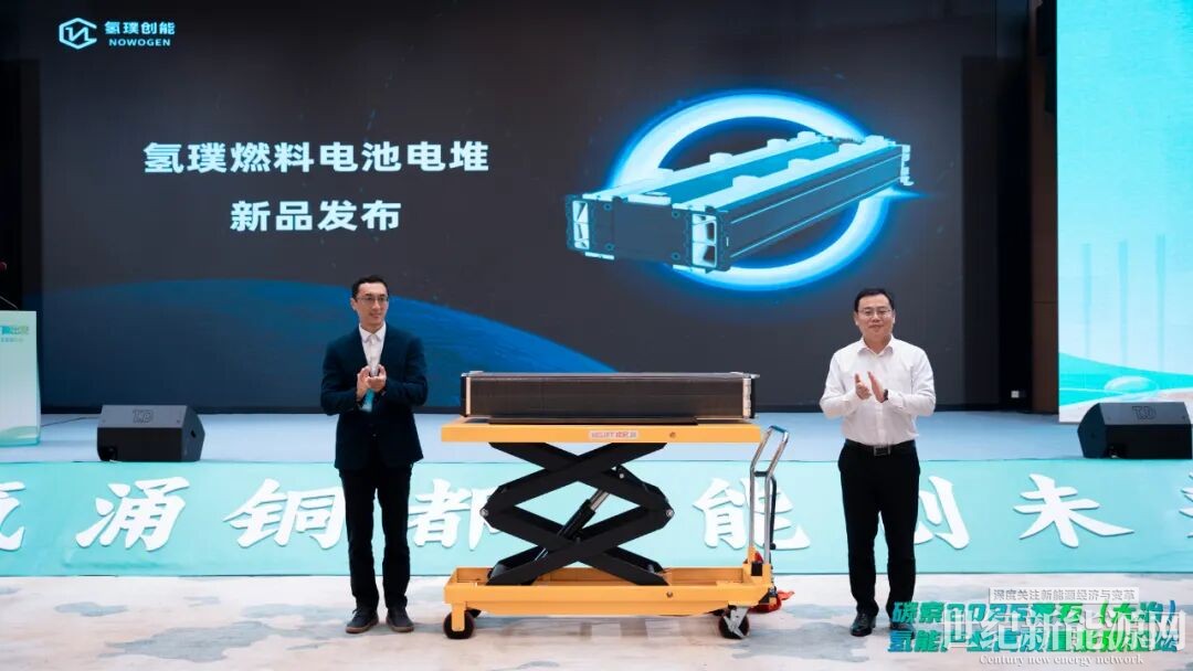 氢璞创能研发副总朱俊娥在发布会现场介绍“该款电堆基于国家‘十四五’重大研发专项布局,设计单电池数量达1000组、单堆功率1MW、体积功率密度达行业顶尖水平,该产品解决了千吨级船舶、轨道交通、百兆瓦级固定发电等领域对大功率单堆的迫切需求,告别了以往依赖多堆并联带来的系统复杂、控制难、成本高、体积大等痛点”。