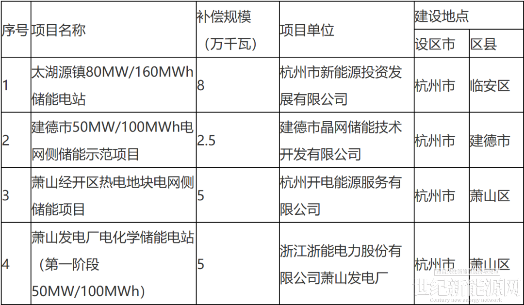 杭州市发展改革委关于公示杭州市电网侧新型储能容量补偿项目清单的通知