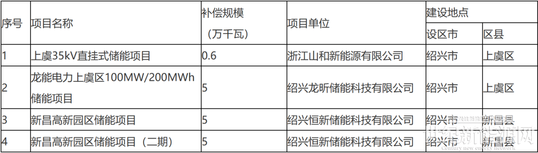 关于绍兴市电网侧新型储能容量补偿项目清单公示