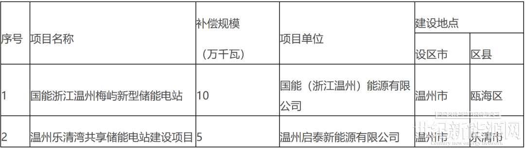 温州市发展改革委关于公示温州市电网侧新型储能容量补偿项目清单的通知