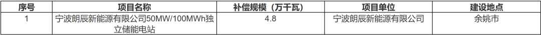 宁波市能源局关于公示宁波市电网侧新型储能容量补偿项目清单的通知