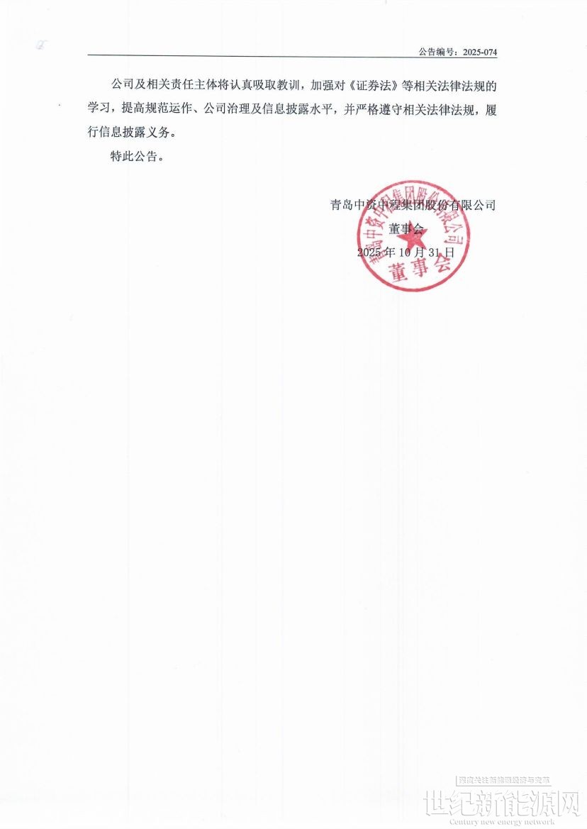10月31日,青岛中资中程集团股份有限公司(简称“青岛中程”)发布关于公司及相关当事人收到中国证券监督管理委员会行政处罚决定书的公告。