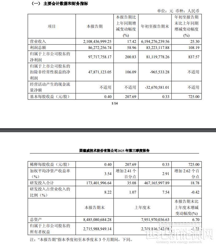 10月29日,固德威(688390)发布2025年三季报。2025年1-9月,公司实现营收61.94亿元,同比增长25.30%;归母净利润8111万元,同比增长837.57%;扣非后净亏损96万元,创造了惊人的增长纪录。