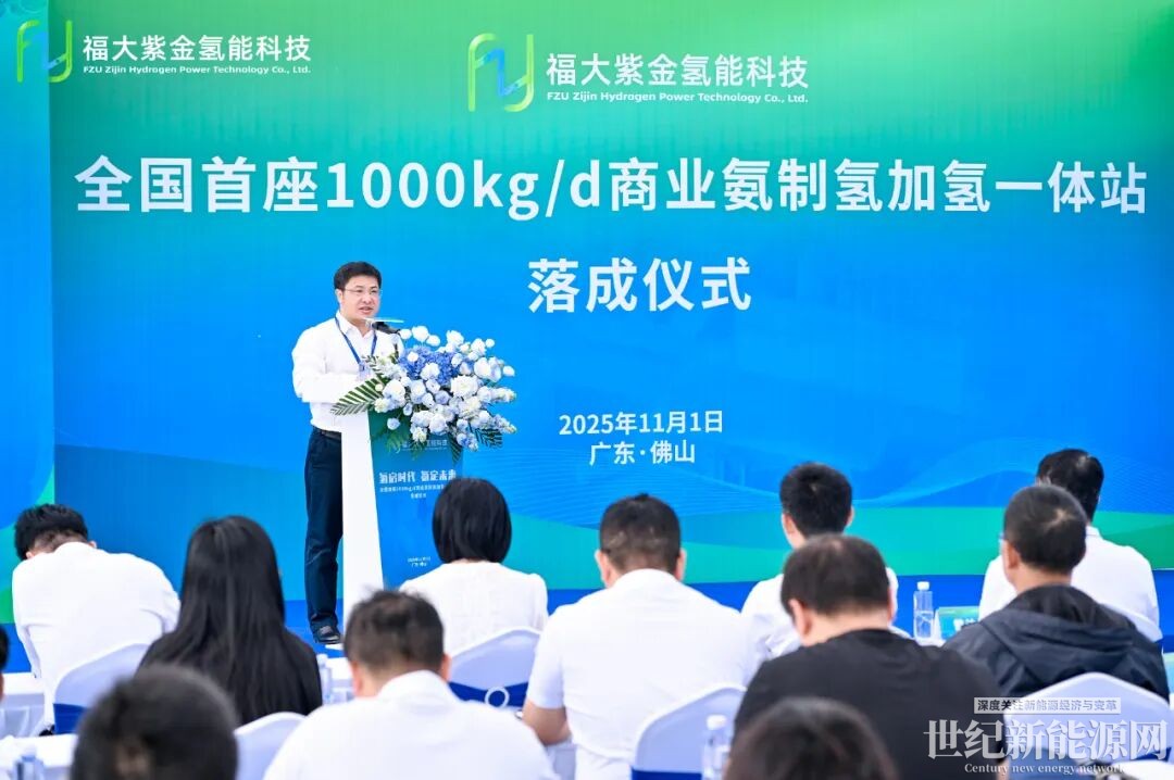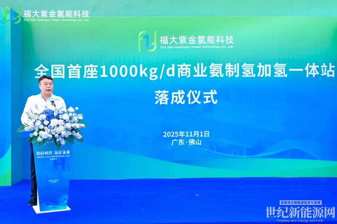 11月1日,由福大紫金氢能科技股份有限公司自主设计、建设并运营的全国首座1000kg/d商业氨制氢加氢一体站在佛山市南海区正式落成。该项目作为国内首个实现千公斤级商业化运行的氨制加氢站项目,标志着我国在“氨-氢”能源技术工程化与市场化应用领域取得里程碑式突破,为氢能产业规模化发展树立了全新行业标杆。