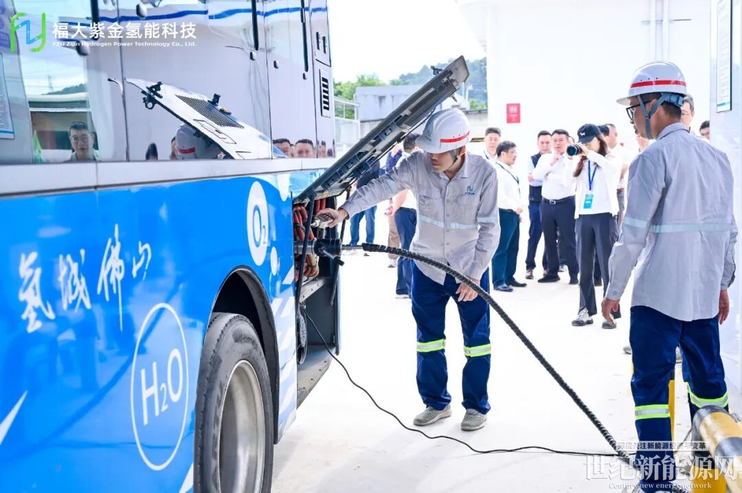 活动现场展示了如何利用氨现场制氢装置制氢并加注到氢燃料电池大巴全过程,受到现场嘉宾的高度关注。