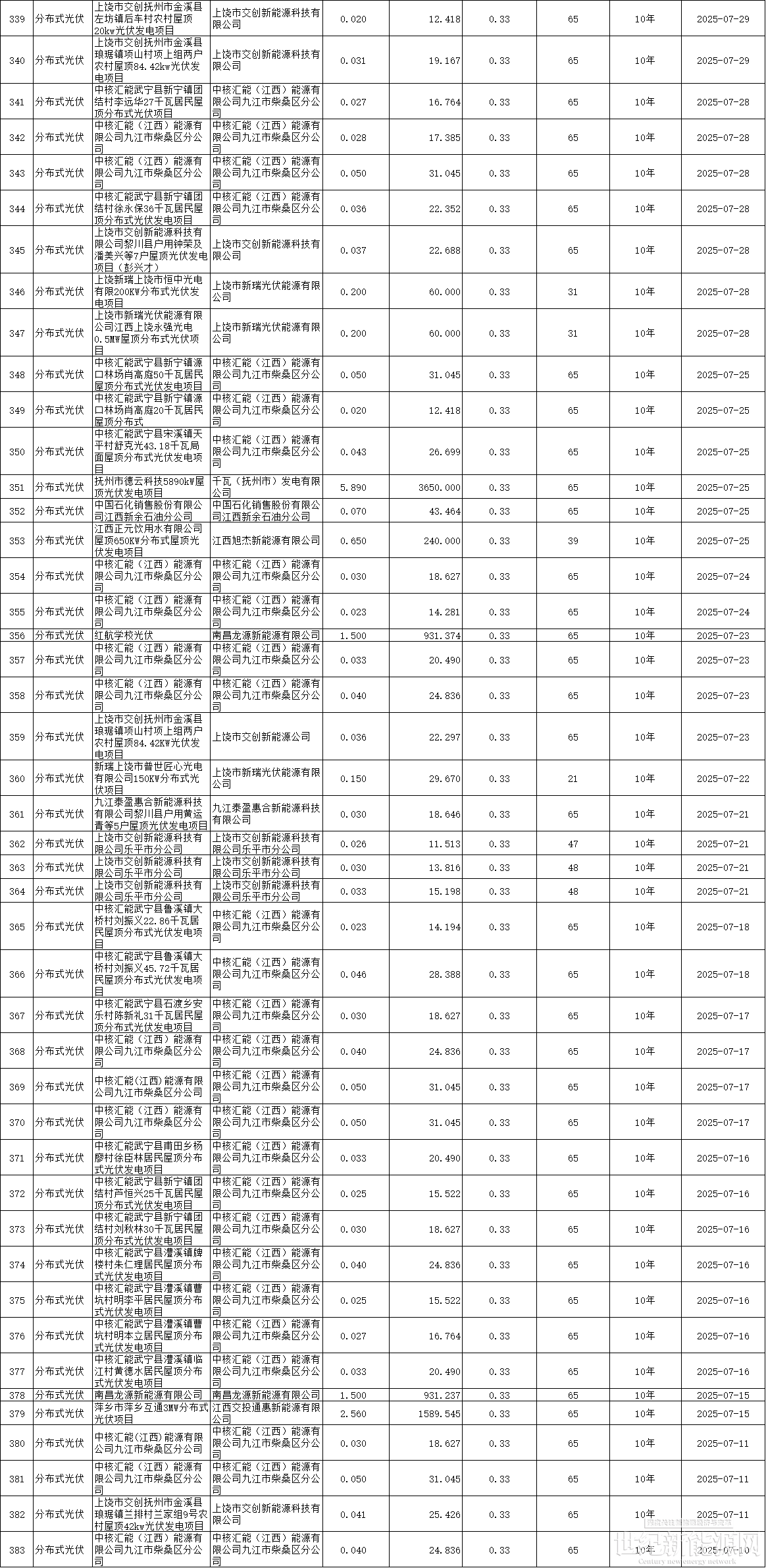 11月5日,江西省发展和改革委员会发布关于公布2025年江西省新能源机制电价首次竞价结果的通知。