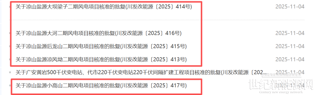 11月4日,四川省发展和改革委员会同时核准五个风电项目,总装机容量共计383.75MW,具体如下: