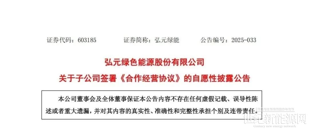7月8日晚间,弘元绿能发布关于子公司签署《合作经营协议》的自愿性披露公告。