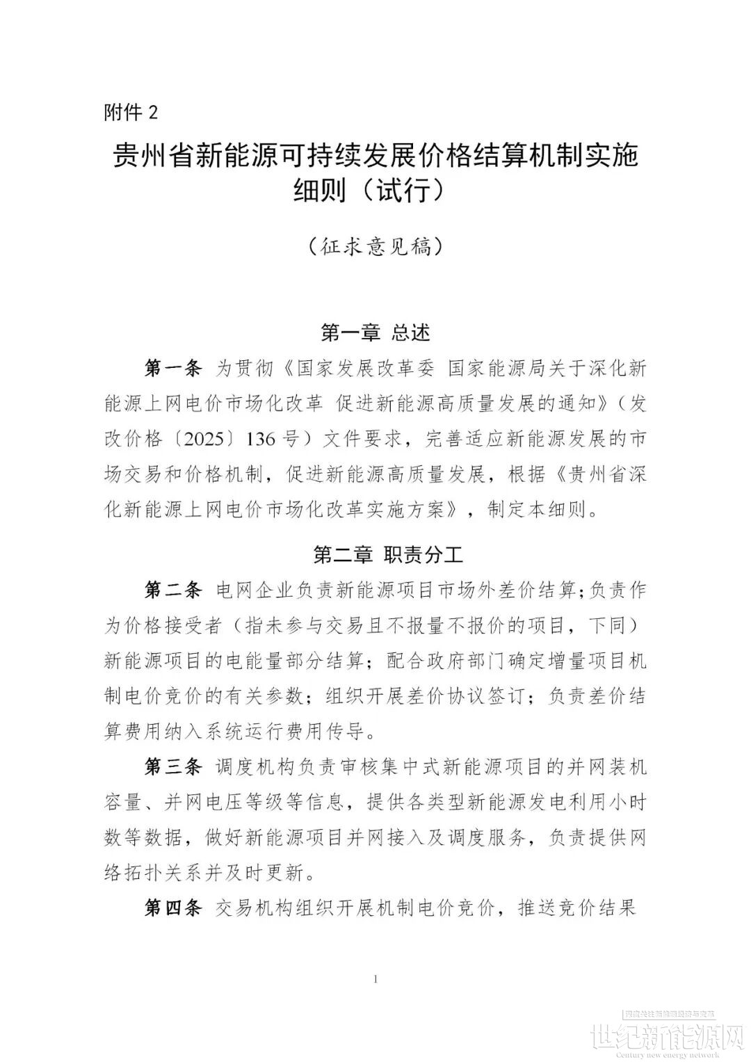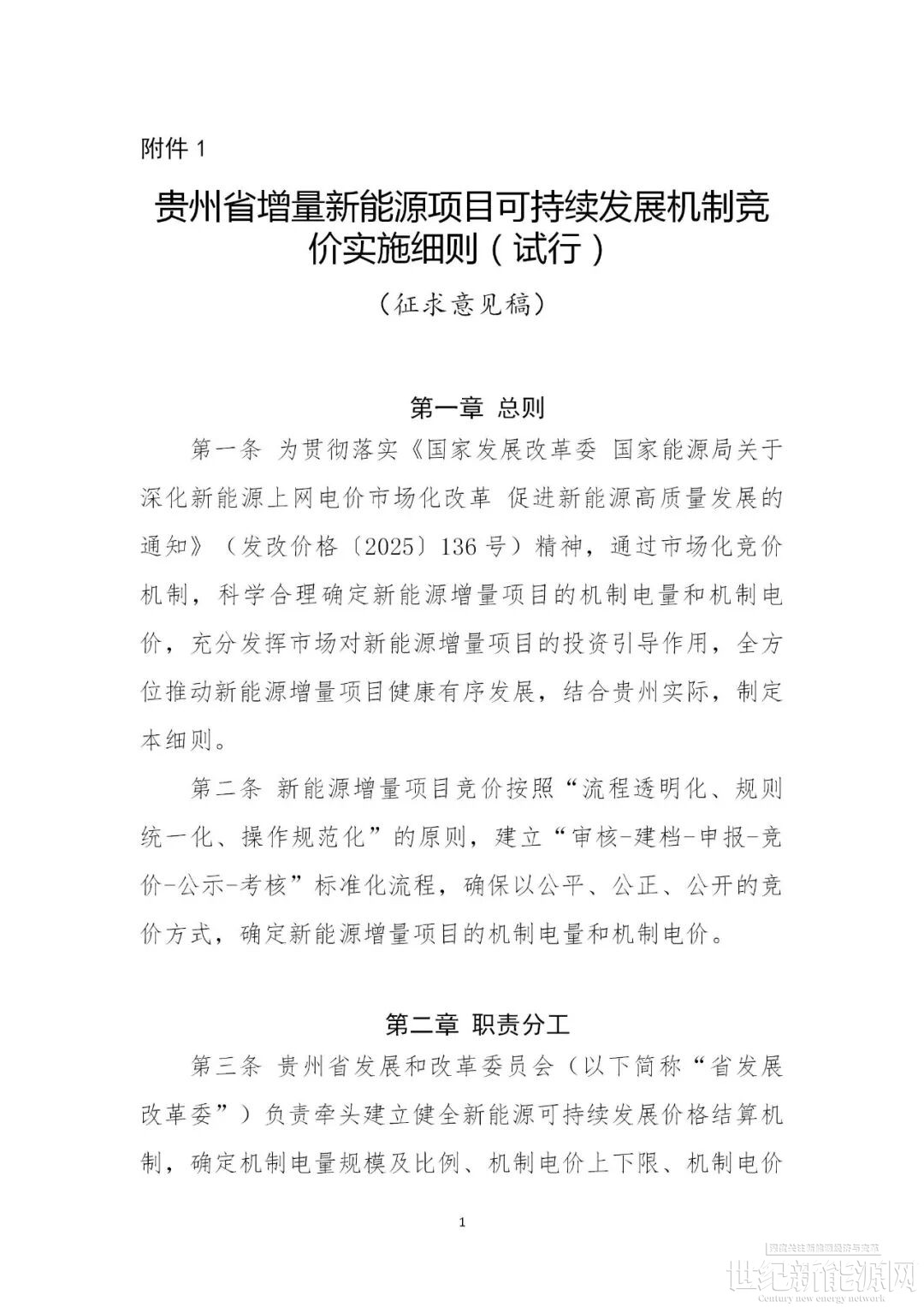 关于公开征求《贵州省增量新能源项目可持续发展机制竞价实施细则(试行)》《贵州省新能源可持续发展价格结算机制实施细则(试行)》意见的公告