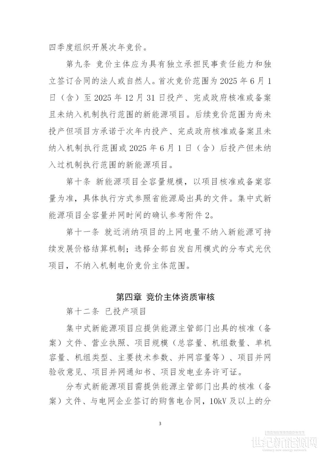 首次竞价范围为2025年6月1日(含)至2025年12月31日投产、完成政府核准或备案且未纳入机制执行范围的新能源项目。