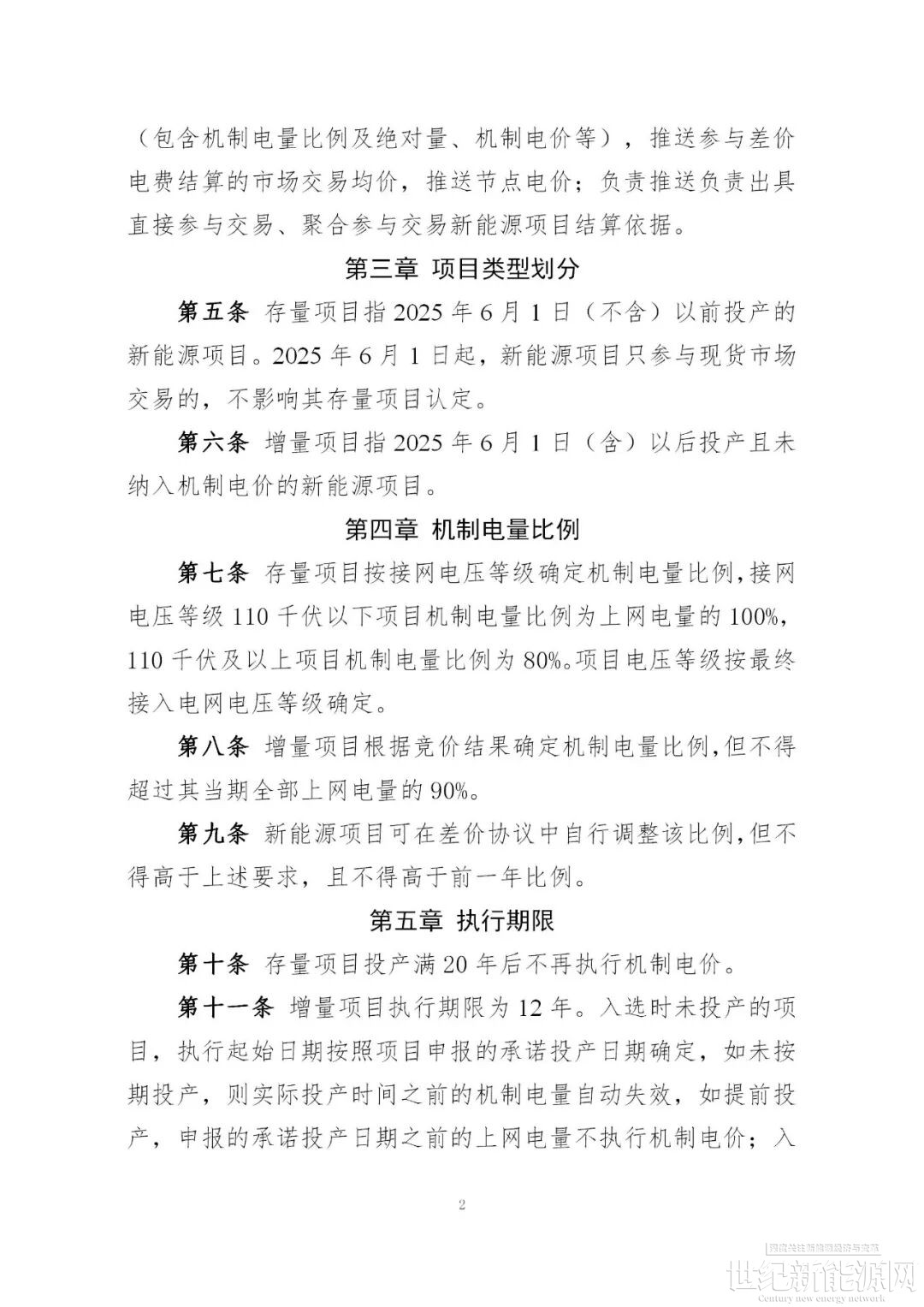 存量项目按接网电压等级确定机制电量比例,接网电压等级110千伏以下项目机制电量比例为上网电量的100%,110千伏及以上项目机制电量比例为80%。项目电压等级按最终接入电网电压等级确定。