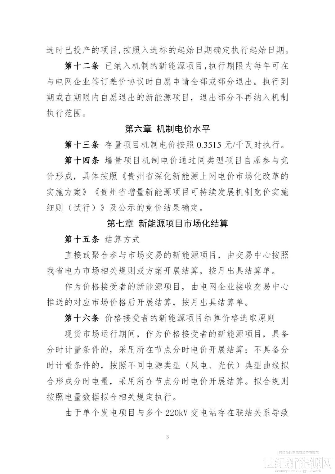 按照《贵州省深化新能源上网电价市场化改革实施方案(试行)》或省级价格主管部门发布的最新通知为准。已纳入机制执行范围的新能源增量项目,执行期限到期后将不再执行机制电价。