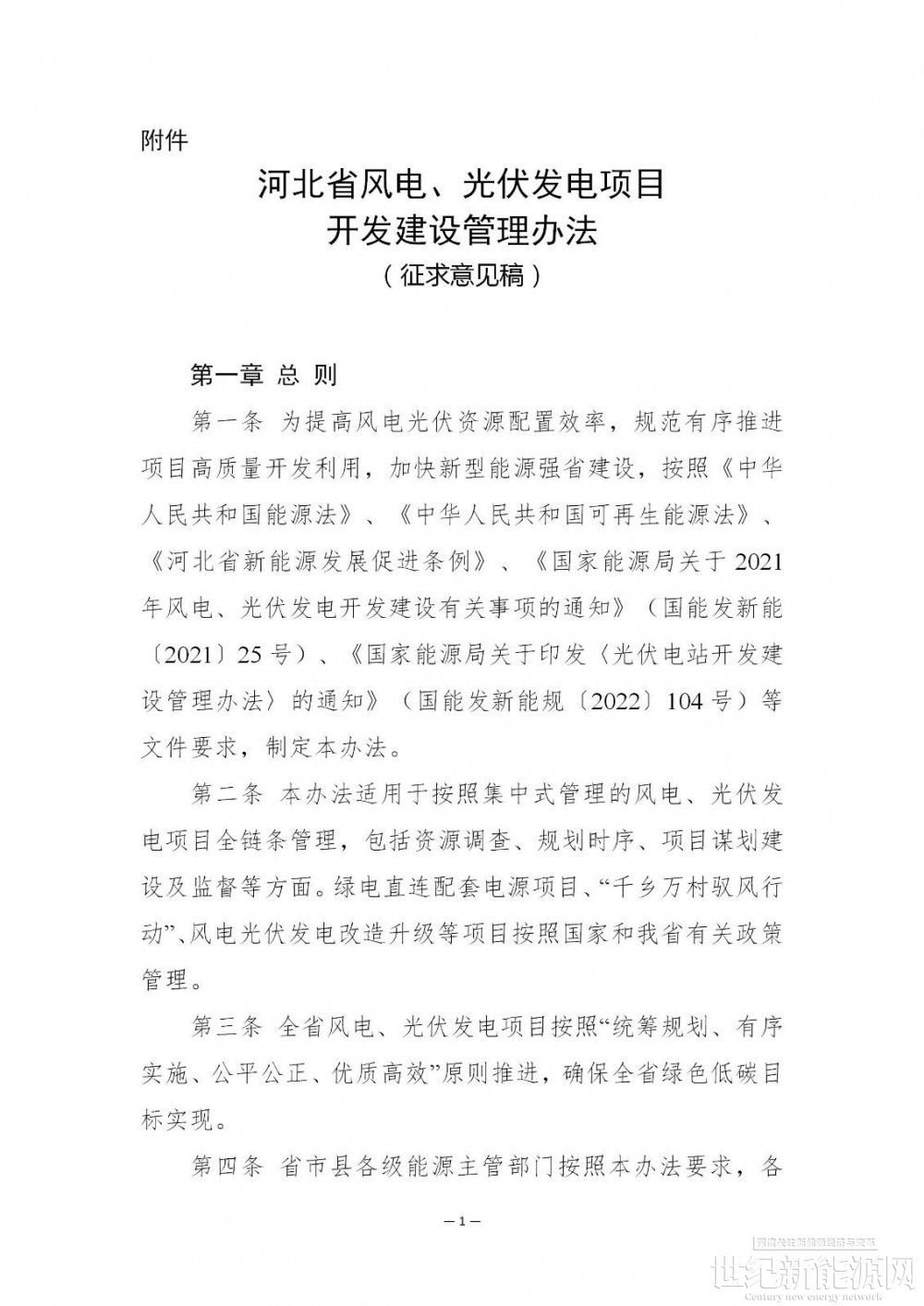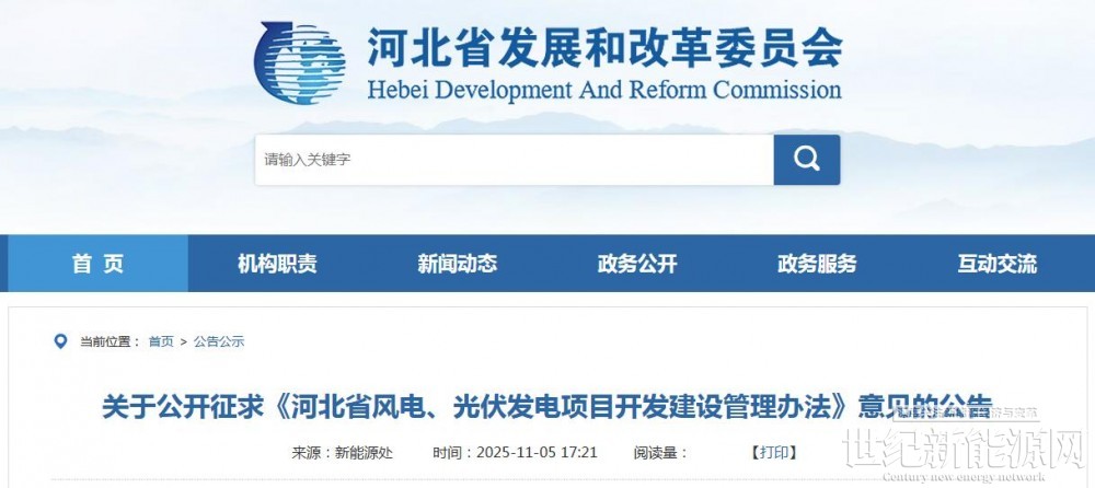 11月5日,河北省发展和改革委员会就《河北省风电、光伏发电项目开发建设管理办法》公开征求意见。