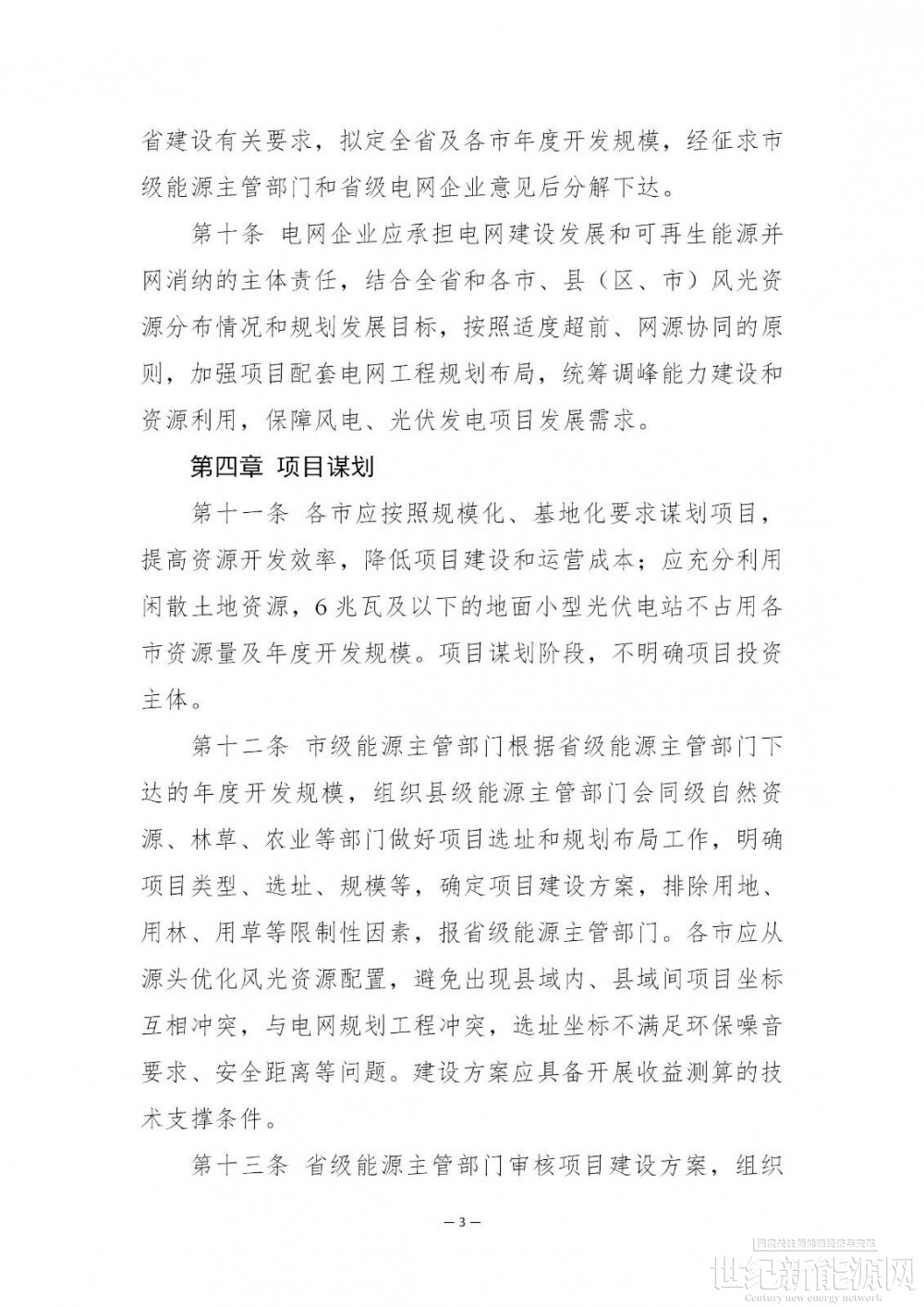 文件指出,本办法适用于按照集中式管理的风电、光伏发电项目全链条管理,包括资源调查、规划时序、项目谋划建设及监督等方面。绿电直连配套电源项目、“千乡万村驭风行动”、风电光伏发电改造升级等项目按照国家和我省有关政策管理。