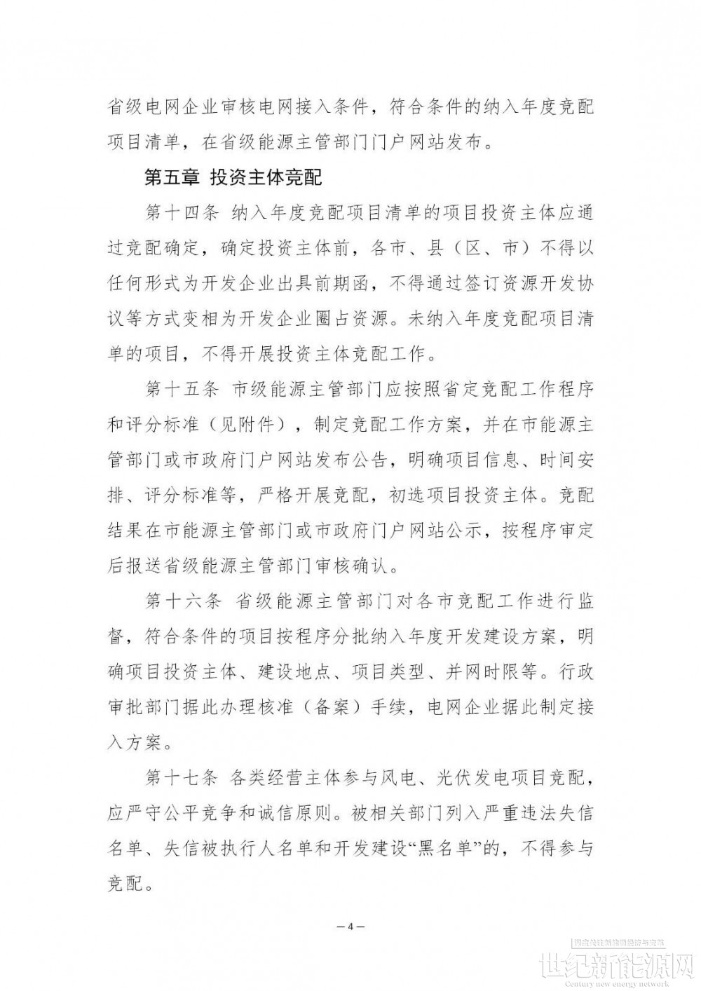 市级能源主管部门应按照公平公正、科学客观的原则,组织开展竞配工作。各市、县(区、市)应严格落实国家和我省招商引资政策,不得违规将配套产业投资落地、落户二三级子公司、采购本地产品或违规收取项目保证金等作为项目参与竞配的条件。